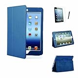 MOFRED® Blue Executive PU Leather Multi Function Standby Case for iPad Mini with Built in Magnet for Sleep / Wake Feature + Screen Protector + Stylus Pen (Available in Multiple Colors) Short Description
